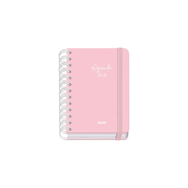 Dohe Serenity Agenda Escolar 25/26 Espiral Wire’o A6 – Dia Pagina – Papel 80g/m2 – 4 Hojas de Pegatinas – Cubierta de Carton Plastificado – Cierre con Goma Elastica – Color Rosa