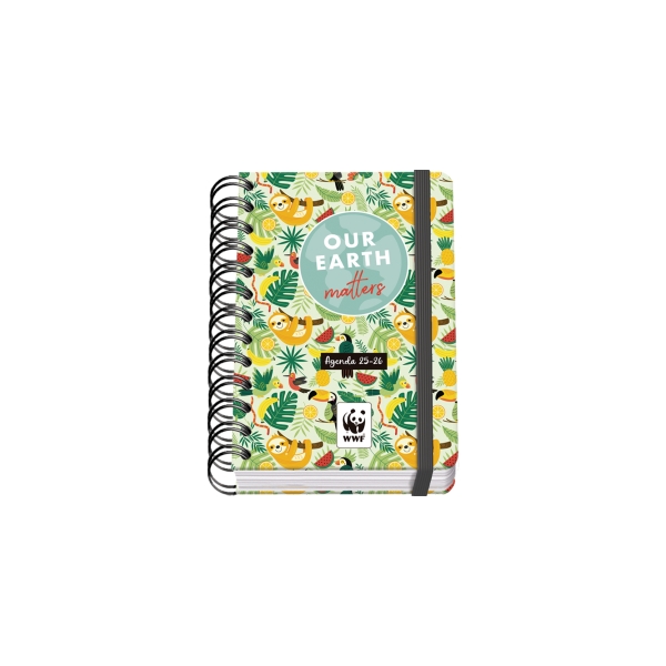 Dohe WWF Tropic Agenda Escolar 25/26 Espiral Wire’o A6 – Dia Pagina – Papel 80g/m2 – 4 Hojas de Pegatinas – Cubierta de Carton Plastificado – Cierre con Goma Elastica