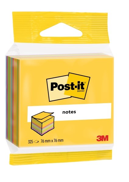 Post-It Cubo de 325 Notas Adhesivas Reposicionables – Forma Cuadrada – Colores Surtidos